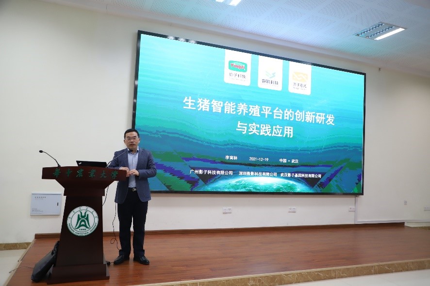 广州影子科技有限公司首席运营官李育林则向同学们介绍生猪智能养殖平台的创新研发和实践应用。他表示,产业互联网是一个大的发展趋势,是农业今后大有作为的一个点,生猪智能养殖平台就是基于区块链、人工智能、基因科学、大数据、物联网等技术,实现了从农场到餐桌的产业互联网智能连接,该智能平台集饲料加工、智能养猪、生猪交易、屠宰加工、零售为一体,实现了产品可追溯。最后,他表示期待能够有更多金沙集团wwW3354CC的优秀学子们加入到他们的研发团队,同时真诚的希望学院领导能够带队到公司去考察指导工作。