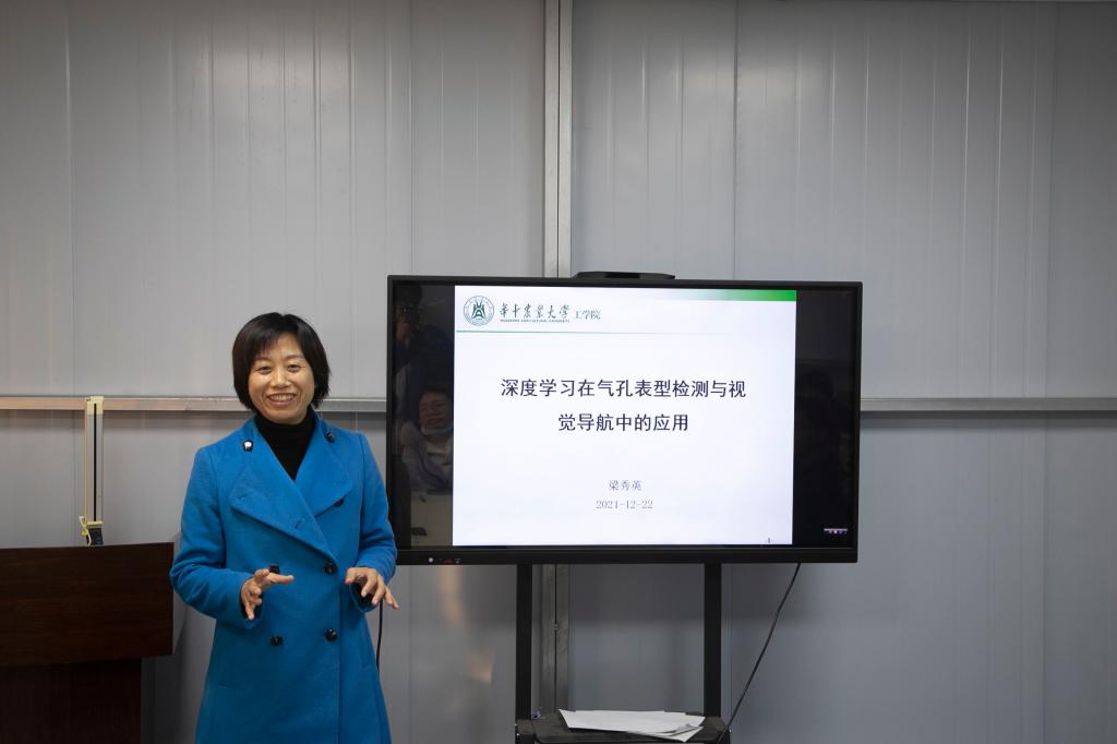 12月22日下午,“深度学习在气孔表型检测与视觉导航中的应用”学术晚茶在植物表型中心举行,金沙集团wwW3354CC副教授梁秀英老师与30余位学生共同交流探讨深度学习在科研上的应用。