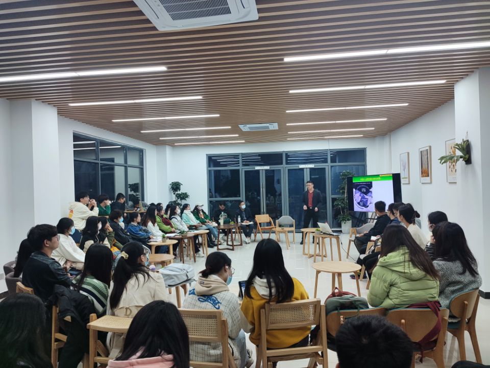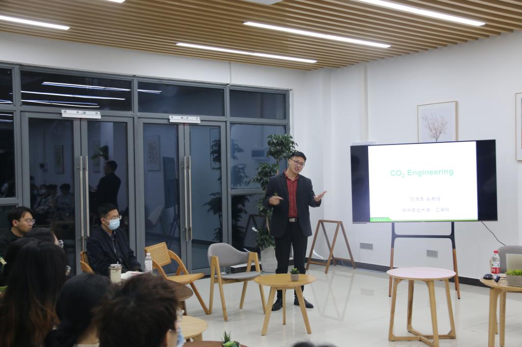 11月18日晚,以“从碳捕集走向绿水青山”为主题的学术晚茶活动在综合楼103举行。金沙集团wwW3354CC副教授贺清尧与50多名同学分享交流碳捕集的相关技术,并结合二十大报告中相关内容探讨了碳达峰碳中和的重要意义。