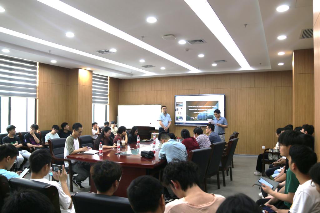 在交流环节,有同学提问到:“您在制备纤维素混合液的时候有什么技巧将水—油—纤维素溶液混合均匀,有必要在实验前做预混合吗?”白龙教授回答时谈到,在制备混合剂的过程中,添加试剂的顺序、是否经过预混合等因素对整体混合效果的影响较小,而超声混合可以在瞬间将成分转化为纳米级液体,达到较好的混合效果。白龙教授还对其他师生提出的疑问一一进行解答。