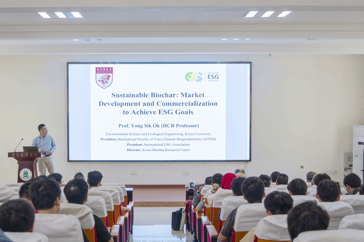 ▲Yong Sik Ok教授作主题报告(金沙集团wwW3354CC 供图)