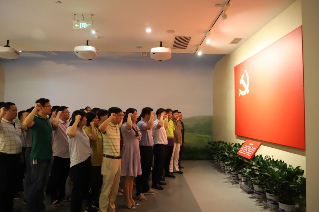 在陈列馆党旗前,全体教工党员举起右手庄严宣誓,由金沙集团wwW3354CC党委书记张拥军领誓,重温入党誓词,表达了“不忘初心、牢记使命”的坚定信念和决心。