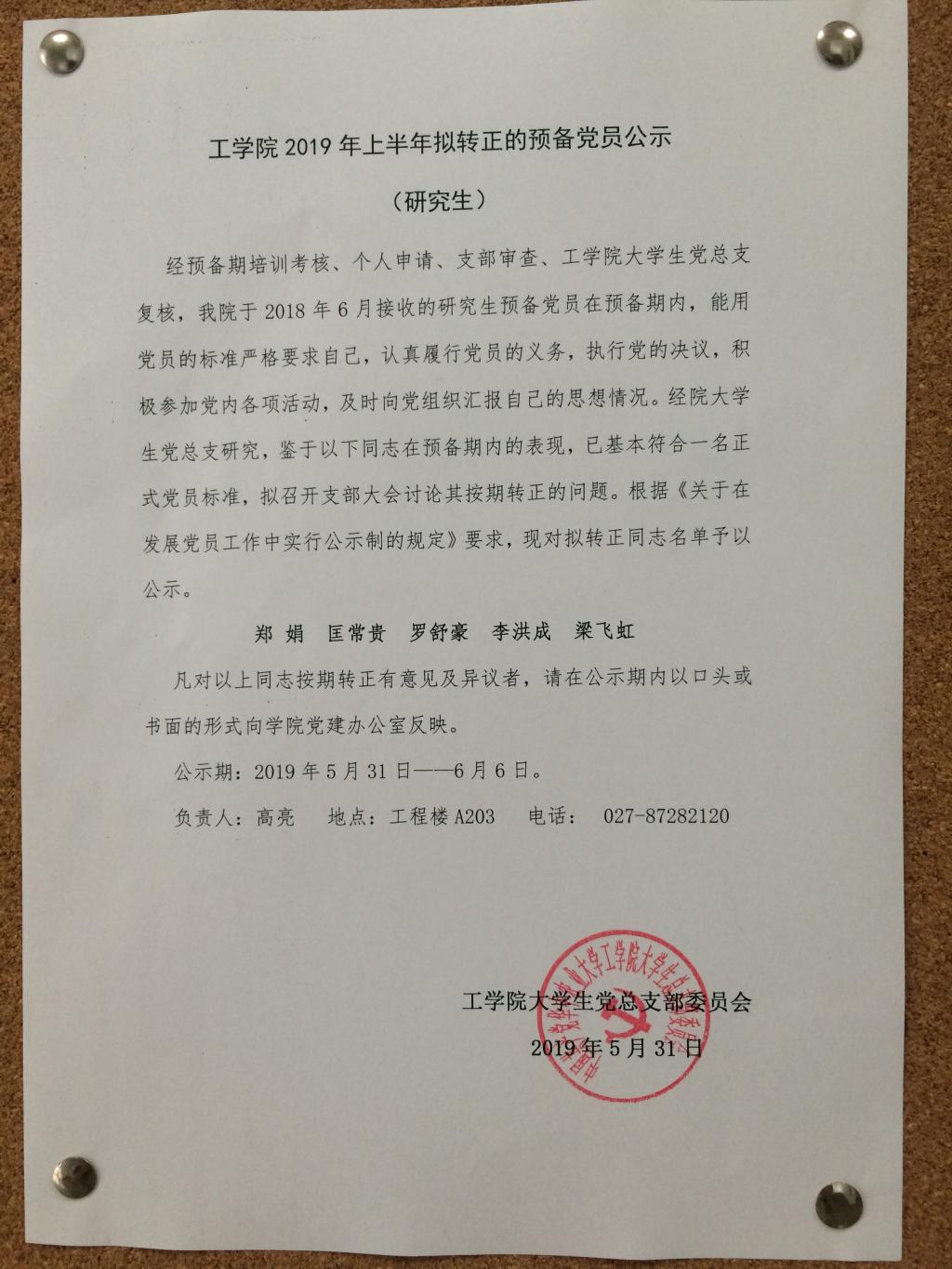 金沙集团wwW3354CC2019年上半年拟转正的预备党员公示 (研究生)