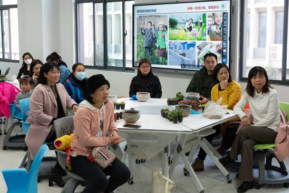王媛媛从康养园艺理念与触觉体验引申到工程学的生物传感器,从现代插花案例欣赏到软萌可爱的多肉组合盆栽,为大家呈现了一场完美的视觉盛宴。“运用园艺手段可以提高生命质量,减轻工作压力,改善人们身体、心理或精神健康状态。”她建议在场的师生,要利用园艺手段美化空间、愉悦精神,用实际行动创建绿色校园。