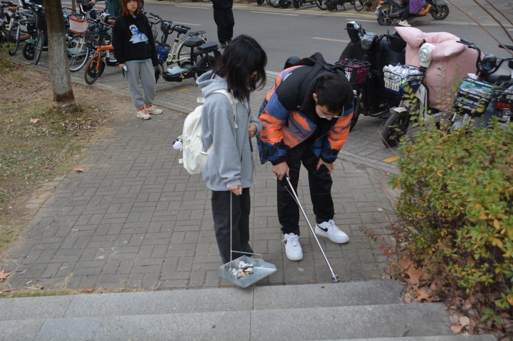 活动伊始,同学们在指定区域集合,用扫帚、夹子等工具有序清扫,不放过每一块垃圾,不漏下每一个角落,大家齐心协力,将责任区域打扫的整洁一新。每个人都热情高涨,积极投身于志愿服务活动,认真清洁校道上的落叶与垃圾。清扫结束后,农工2103班的同学说:“通过这次实践活动,我们用自己的劳动让校园变得更整洁,通过这次活动,我们提升了团结合作能力。”