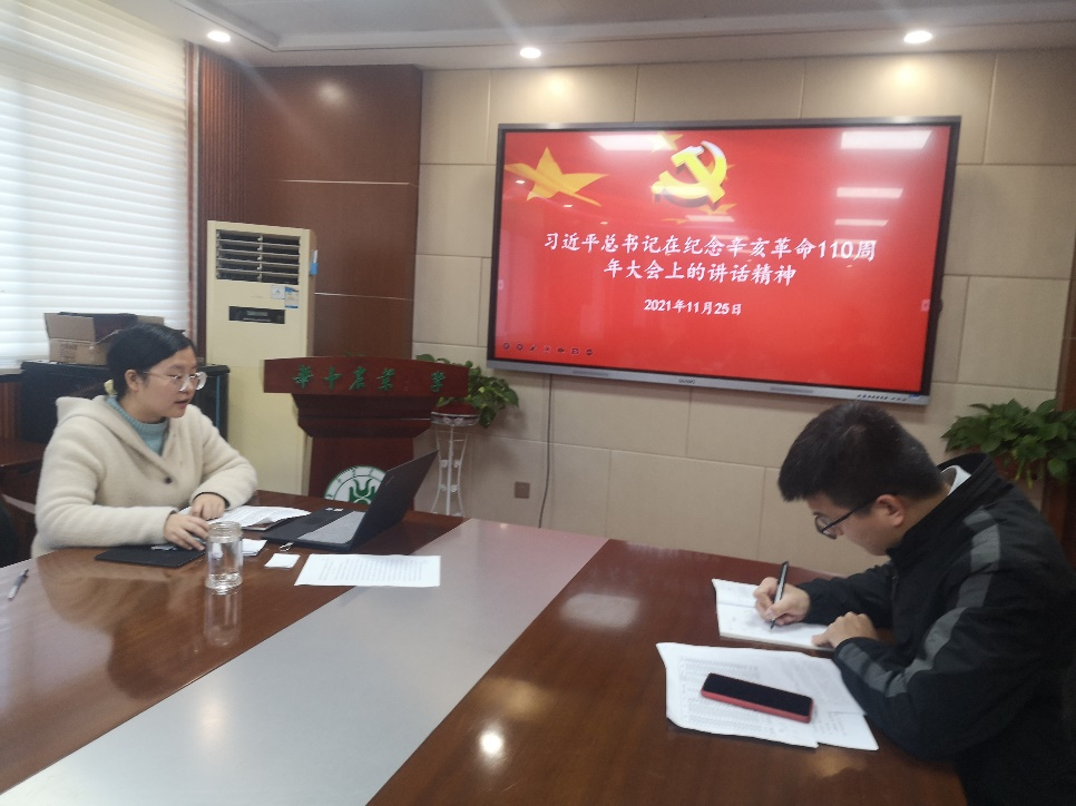 11月25日中午,我院农业生物质增值化技术与装备研究生第一党支部在工程楼A201以“聚焦六中全会,牢记使命担当”为主题开展11月份支部主题党日活动,集中学习十九届六中全会精神、习近平总书记在纪念辛亥革命110周年大会上的讲话精神、《华中农业大学党支部工作细则(2021年修订)》等内容。