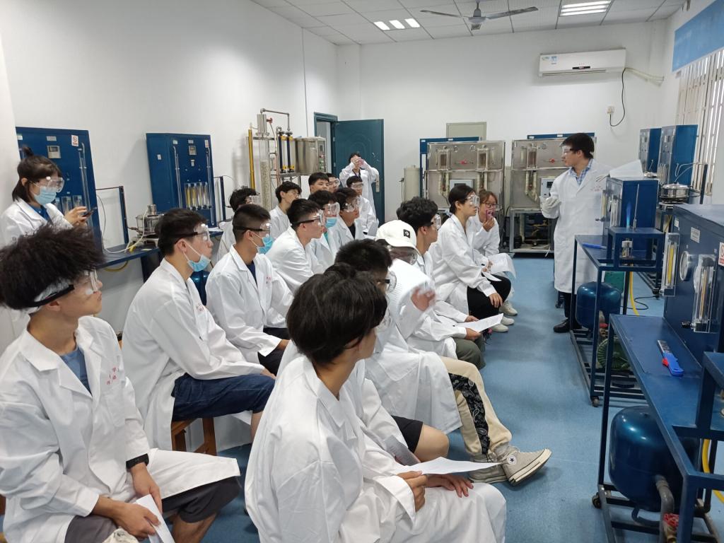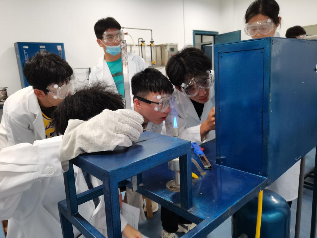 为了更好地解释火焰燃烧的现象,老师使用燃烧设备向新生们演示如何通过控制空气和燃料的释放来改变火焰的燃烧状态。 “大家可以看到,火焰主要有蓝色和黄色两部分构成,燃气的火焰本应该是蓝色的,但是由于燃烧不充分,部分火焰变成了黄色。” 老师边演示边解释到。“通过测量焰心锥体的高度,我们还可以算出火焰传播的速度。”