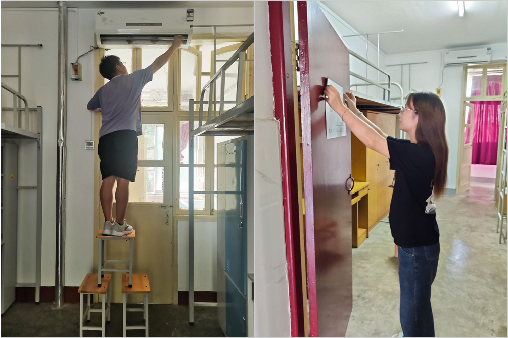 为做好开学迎新准备,学院2020级476名同学积极响应学校学院号召,全部投入到新生宿舍卫生清洁工作中。窗台上沉积的灰尘、玻璃上的污渍、地面上残留的纸屑……需要处理的问题虽多,但为给新生提供一个整洁的住宿环境,同学们埋头苦干、反复清理,床沿、空调线、柜子边角等一些容易遗漏的细节都不放过,最终让新生宿舍焕然一新。志愿者们汗湿襟衫却不为所动,这种志愿精神让青春更加别具风采。