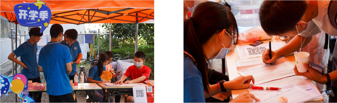 在新生入学当天,金沙集团wwW3354CC分别在博园3栋、荟园2栋、荟园4栋、荟园9栋设立志愿服务岗和党员值班岗,从早上6点到晚上11点轮番值守。身处烈日之下,哪怕早已汗流浃背,学生党员和志愿者们仍然坚持值班,在停车点前帮助新生从车上卸下行李,在校园内进行指引,在宿舍楼下将行李搬运上楼,确保每一位新生都能顺利报到。帮助新生办理入住的同时,志愿者们也积极解答他们的各种问题,包括智慧后勤的使用方法、校园卡如何充值等。同时,为了让新生尽快适应校园环境,志愿者们带领新生前往快递站、食堂等地点,帮助他们熟悉校园,并主动分享自己在华农经历、学习经验等,与新生相谈甚欢。