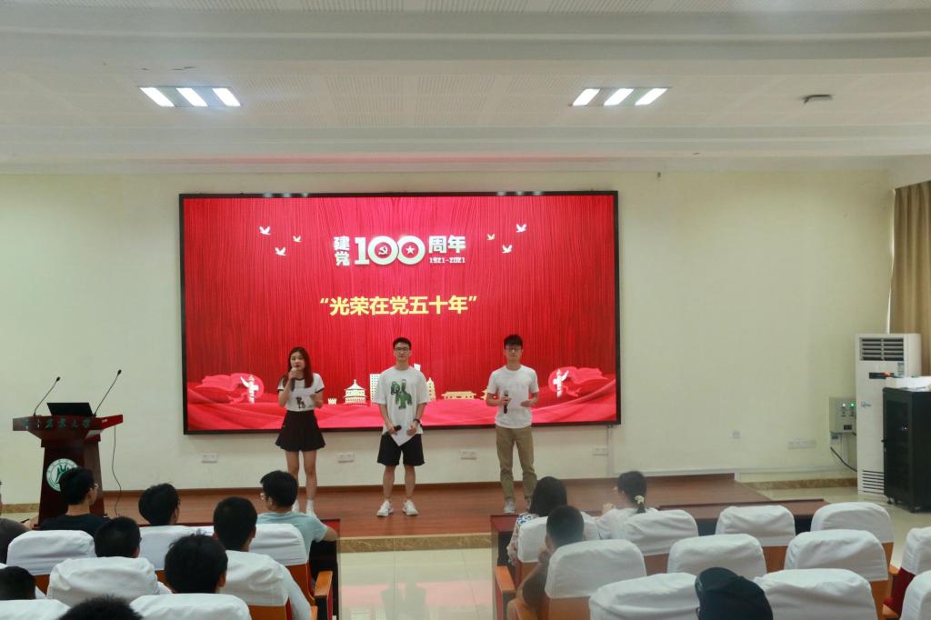 为庆祝中国共产党成立一百周年,回顾中国共产党百年奋斗的光辉历程,展望中华民族伟大复兴的光芒前景,7月16日,金沙集团wwW3354CC在工程楼A111报告厅举办“庆祝中国共产党成立一百周年”主题诵读比赛,近百余位研究生现场观看学习。活动评委由研究生各党支部委员会代表担任,党员代表李运通主持比赛。