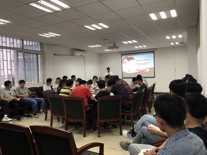 马克思主义学院宣讲员杜彧坤以“百年党史的光辉历程”为主题开展精读精讲,以开天辟地、改天换地、翻天覆地、惊天动地四个章节详细介绍了党在发展各时期的大事件。杜彧坤谈到,回顾中国共产党的百年光辉历程,共产党人始终风雨兼程,在党史中寻初心、守初心,就要我们无论外界风云如何变幻,都不能忘记来时的路。随后,施彬彬和王贤波分别领学了《中国共产党简史》的第五、六章。