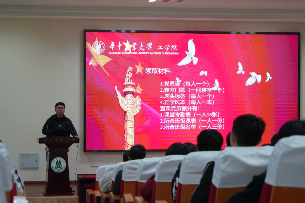 党建监察部李龙骧同学,对预备党员的工作内容进行了介绍,要求党员查课时应注意佩戴党徽,而查课情况会作为日常考核标准之一,并对具体的查课要求、标准及党员们的疑问进行了详细的说明和解答,特别强调在工作时应进行正向引导,并注意同学们的沟通交流方式。