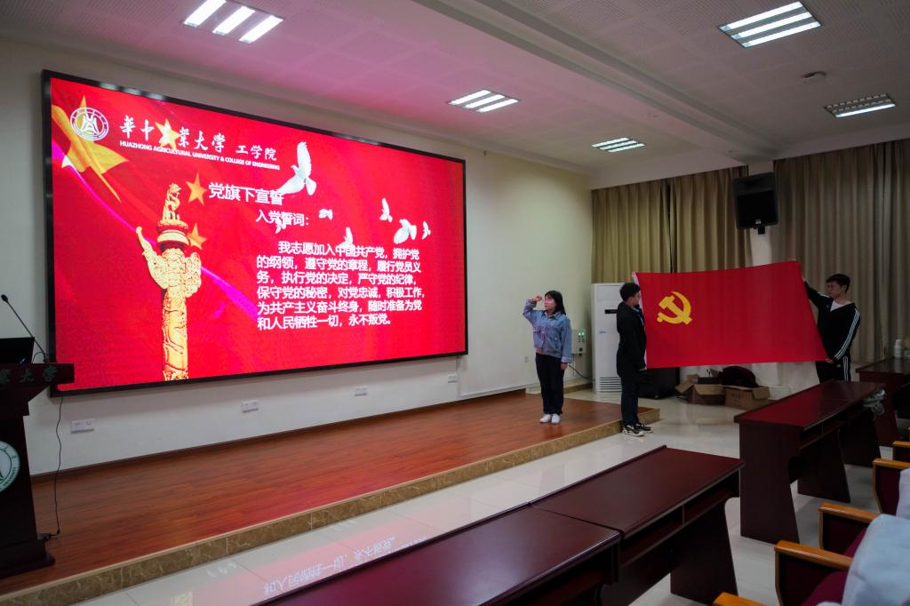 会议最后,全体党员起立,面对党旗举起右拳庄严宣誓:“我志愿加入中国共产党,拥护党的纲领,遵守党的章程,履行党员义务,执行党的决定,严守党的纪律,保守党的秘密,对党忠诚,积极工作,为共产主义奋斗终身,随时为党和人民牺牲一切,永不叛党”。会议在党员们庄严的宣誓声中圆满结束。
