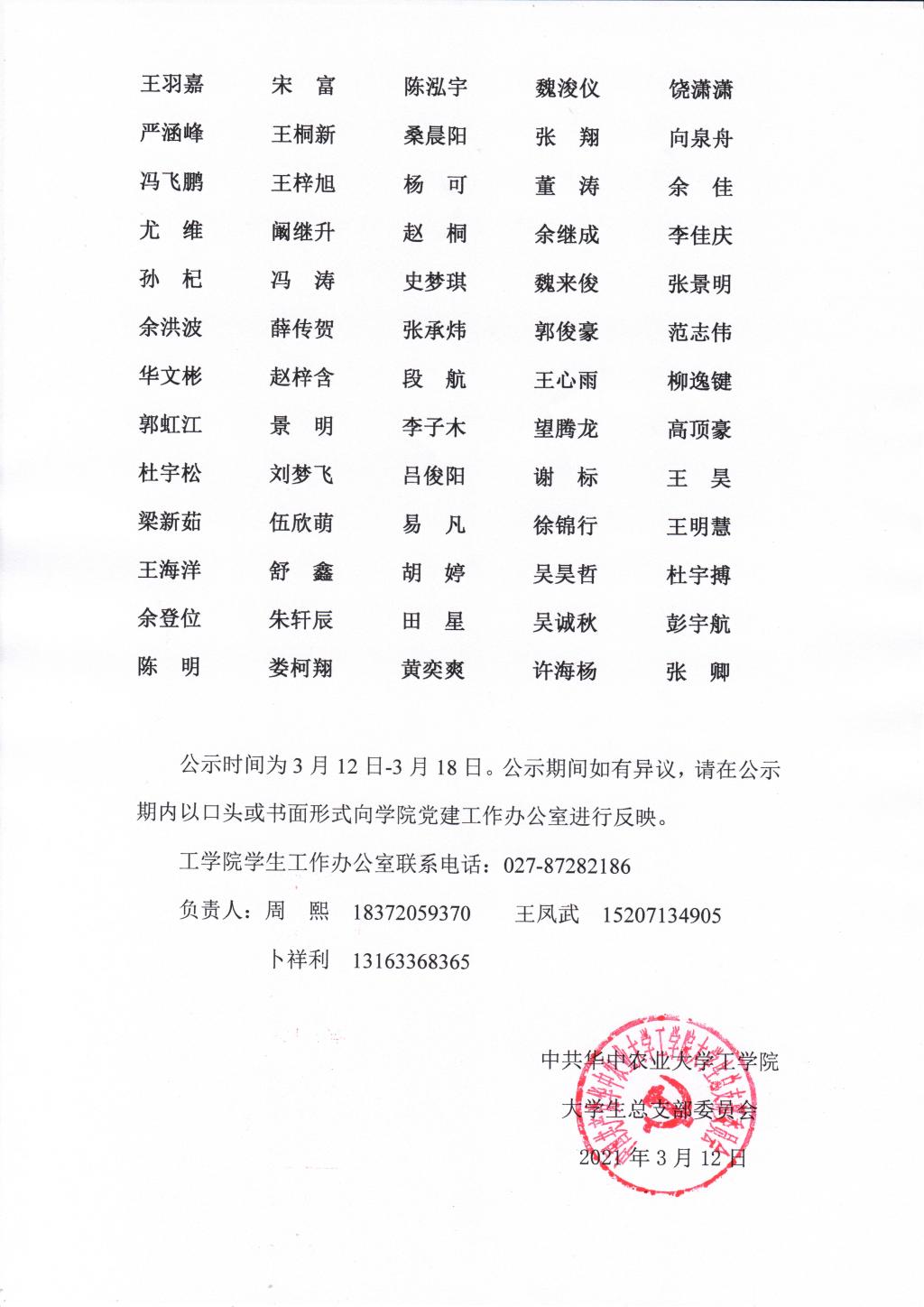 【研究生事务】金沙集团wwW3354CC2021年3月关于拟确定王浩杰等37位同志为入党积极分子的公示