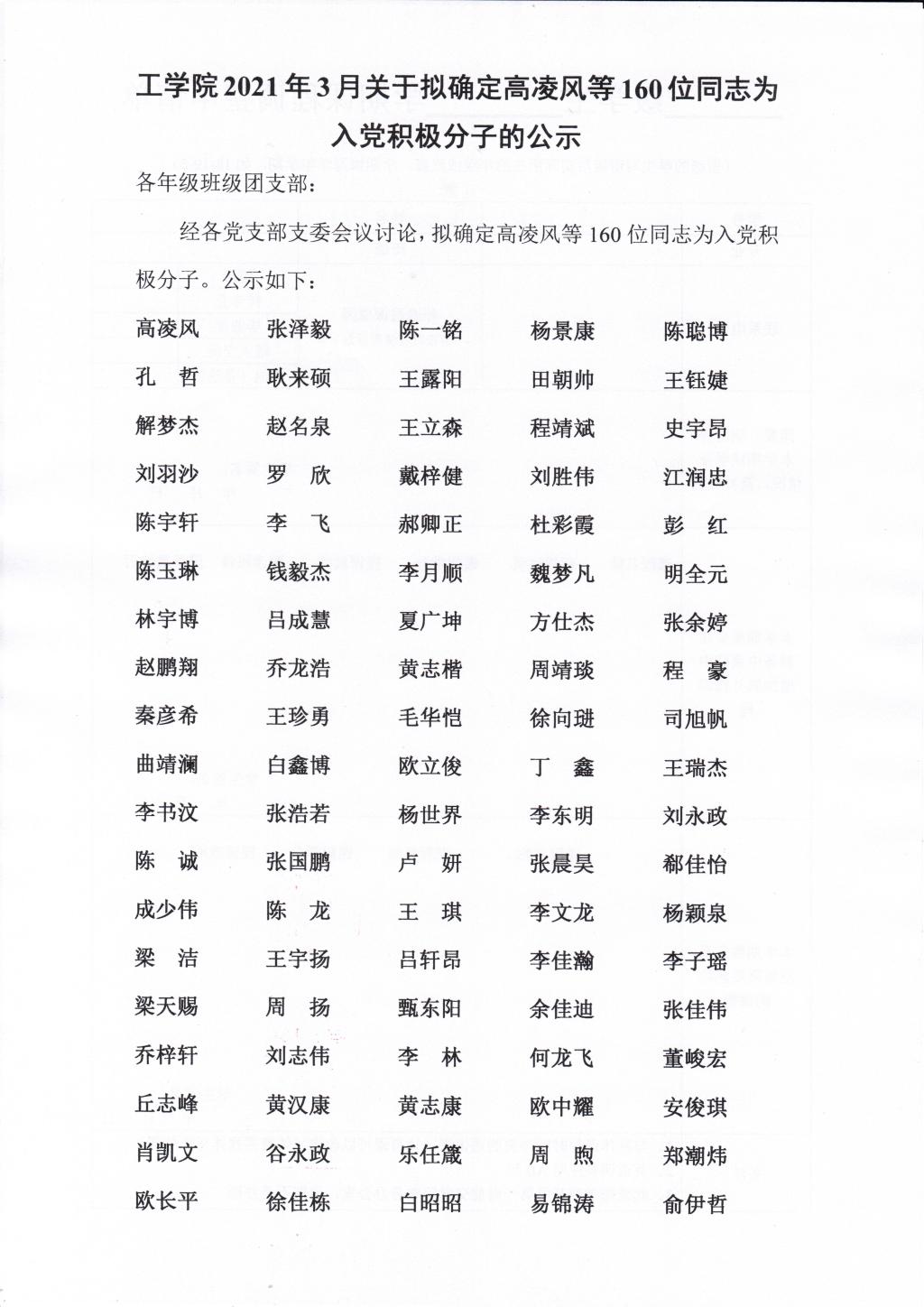 金沙集团wwW3354CC2021年3月关于拟确定高凌风等160位同志为入党积极分子的公示