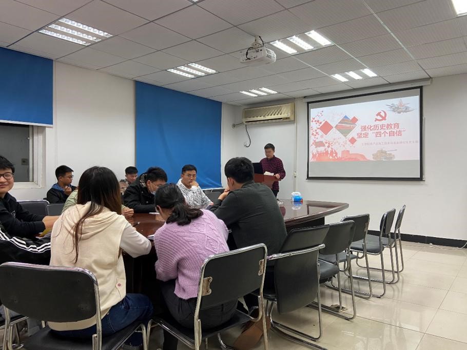 农业机械化工程与装备研究生第二党支部在庄严的入党誓词声中开启了此次主题党日活动,支部以“纪念抗美援朝、坚定‘四个自信’”为题开展学习交流。张帅同志领学了抗美援朝战争的历程,集中观看了相关教育短片。