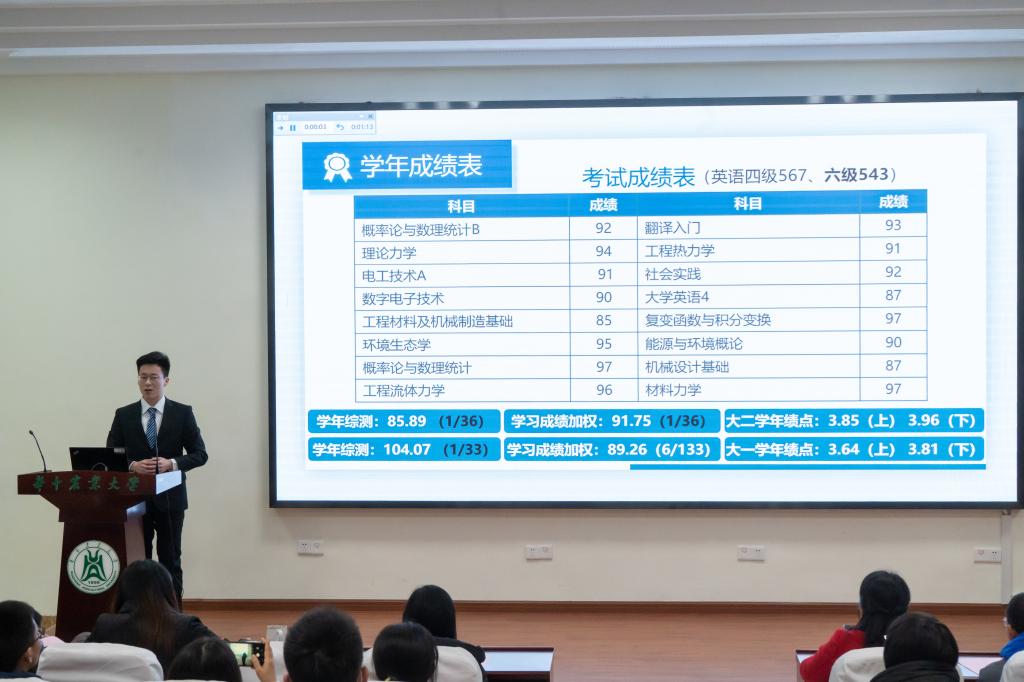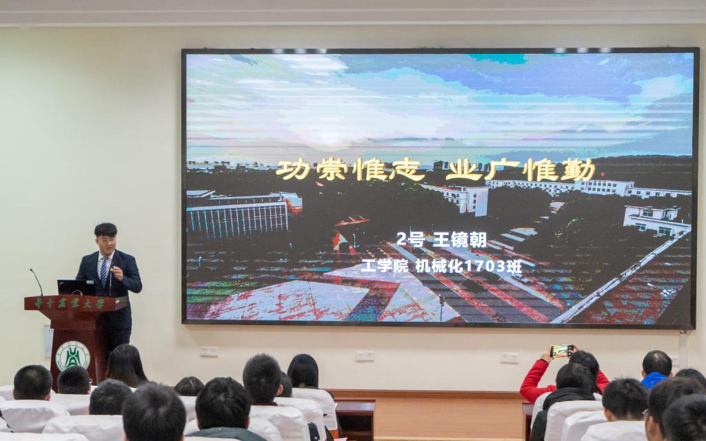 机械化1703王镜朝自我介绍时表示,“我将拖拉机开上了人民日报,只因对金沙集团wwW3354CC爱得深沉”。从大一时“大学生标兵”分享会的观众到大四时“大学生标兵”获得者,三年多的发奋学习、潜心科研、出色的学生工作成就了今天的他。