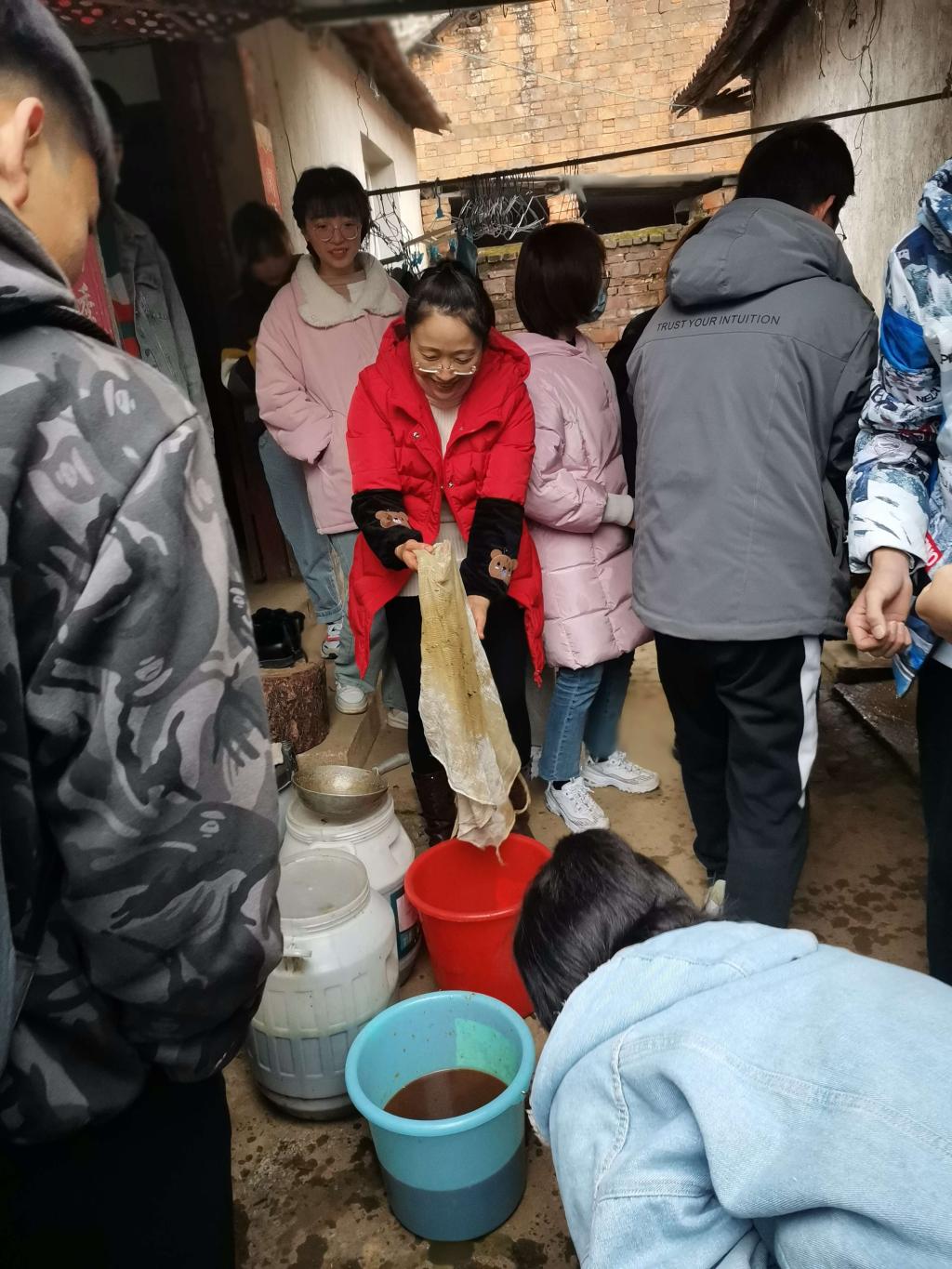 走进果园,直播进行中,同学们参观了环保酵素种植的果蔬,品尝了环保酵素橘子。同学们直呼:“甜!好甜!”手机直播了同学们吃到橘子时的真实反应。大家以真挚的情感在线上宣传环保酵素橘子,通过直播对话的方式宣传酵素橘子的安全性与甘甜味道,为农民伯伯拉到了大量的订单。随即同学们展开了帮助农民伯伯减轻农活负担的志愿活动。清扫断枝,捡拾落在地上的橘子以制作环保酵素,实现废弃物资源化利用。捡完次品橘子后,同学们在班主任李旭荣老师的指导下开始制做酵素。“酵素是由红糖:果皮:水按照1:3:10的比例混合密封发酵三个月的产物。它实现了果皮的资源重复利用,还可以代替农药,既环保又实现了可持续发展,推动了农业的循环生态种植。”李旭荣耐心地讲解着,学生们边听边认真地切着橘子,然后进行混合、装桶、密封……全班同学共同努力完成了12桶酵素制作,整个活动通过前期宣传网上预售+直播带货+自发消费等销售橘子、贡柑六百多斤。