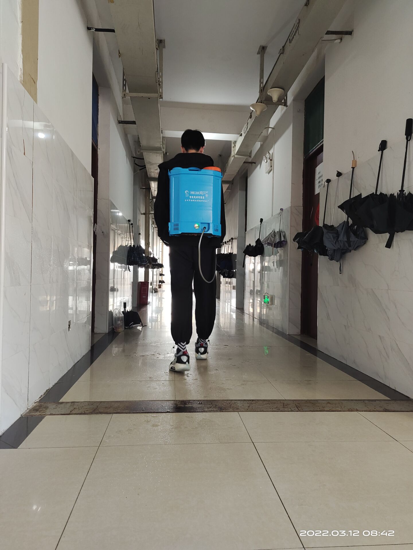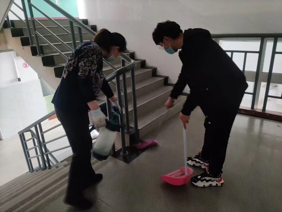 上午8时,所有志愿者到达相应楼栋,在工作人员的指引下志愿者们明确了自己工作任务,志愿者们迅速以饱满的精神和负责的态度投入到消杀任务中去。消杀工作并没有志愿者们一开始想象的那么简单,整个楼栋需要做到“无死角”、“全覆盖”,所以志愿者们需要对楼梯楼道内进行全部清扫,随后再背着配比适当的近十斤消毒水逐一楼层进行喷洒 ,两层楼下来,志愿者们都已经满头大汗。但是志愿者们无一抱怨,而是默默地进行工作着。经过近三个小时,所有消杀工作顺利完成。