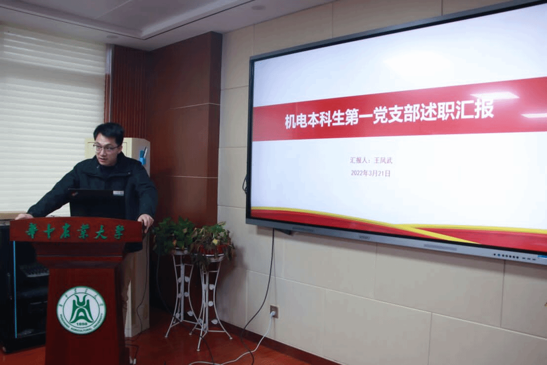 机电本科生第一党支部书记王凤武同志汇报了上一年度支部接收与培养党员的基本情况,表示要将“三会一课”“两学一做”制度化,使主题党日学习活动常态化。同时,他强调,要扛起实践教育与学习的责任,要注重创新实践形式,加强学生党员和教工党员的沟通联系,进一步加强党支部的思想政治建设。