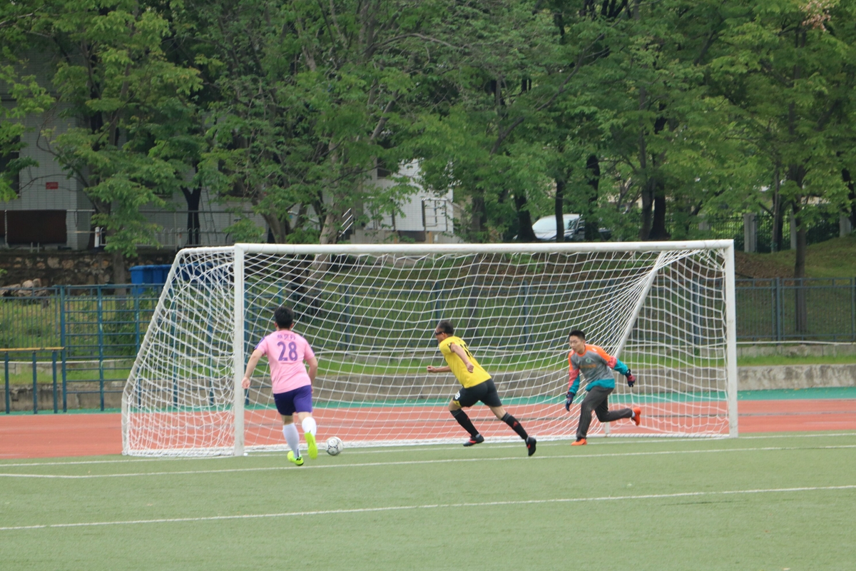 4月13日中午,2022“狮子山杯”足球赛(研究生)男足第5比赛日的比赛激情开战。在东运动场的一场比赛中,身穿黄色球衣的金沙集团wwW3354CC、信息学院男足联队3:0战胜身穿粉色球衣的食品科学技术学院队,取得小组两连胜。