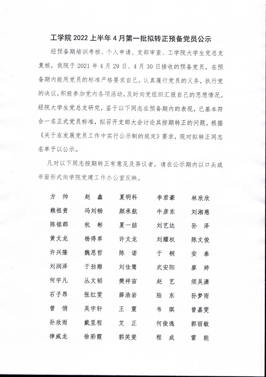 金沙集团wwW3354CC2022上半年4月第一批拟转正本科生预备党员公示