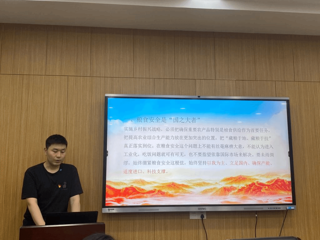 王绍帅同志领学习近平总书记在政协农业界、社会福利和社会保障界委员联组会上的重要讲话精神时分享到,解决吃饭问题,根本出路在科技,也就是通过科技来提高农产品产量,降低生产成本,实现高产高效。我们作为金沙集团wwW3354CC的研究生,应该去努力学习相关知识,搞好科学研究,为农业机械化发展添砖加瓦。