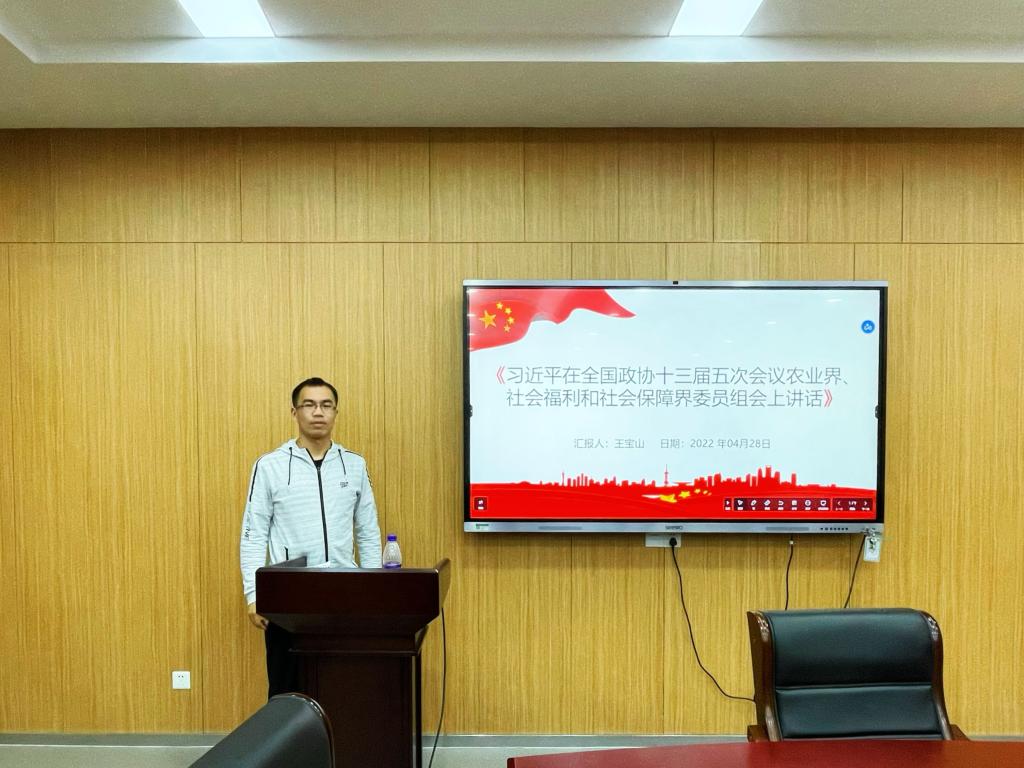 王宝山同志领学习近平总书记在全国政协十三届五次会议农业界、社会福利和社会保障届委员组会上的重要讲话