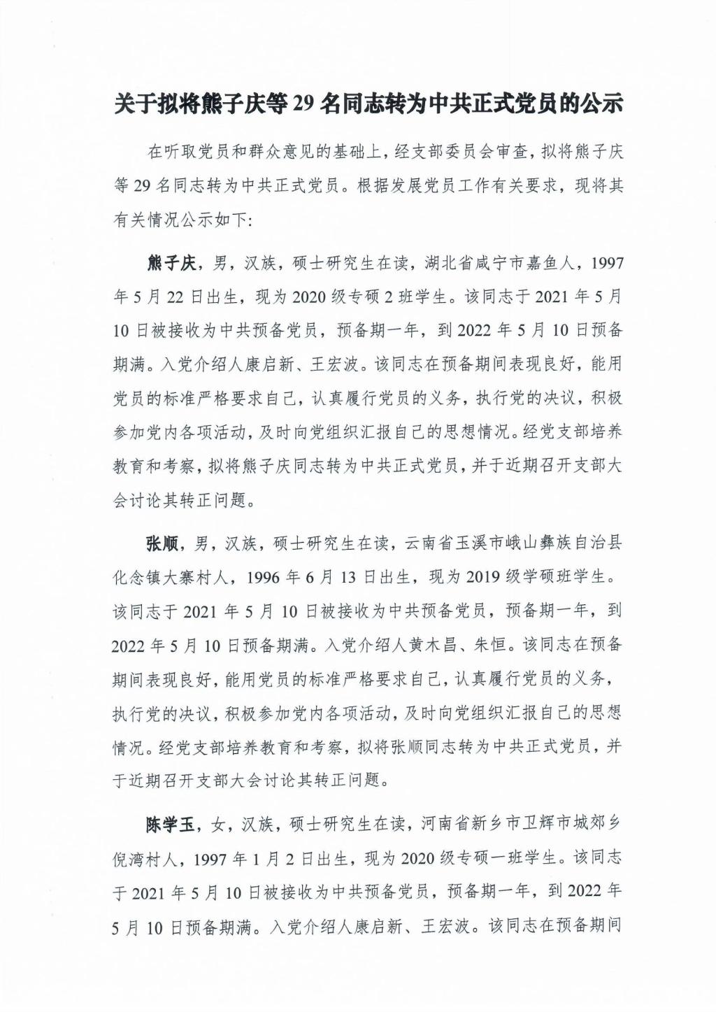 【研】关于拟将熊子庆等29名同志转为中共正式党员的公示