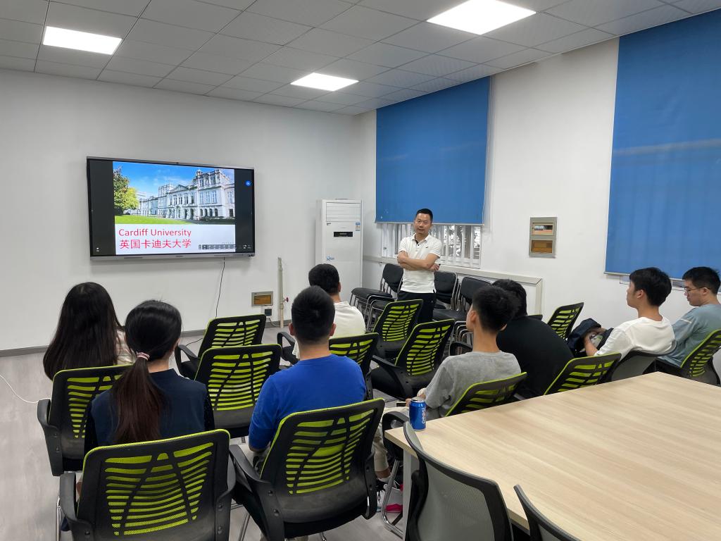 宣讲会上,杨欣为同学们介绍了英国卡迪夫大学的基本情况,展示了卡迪夫大学的校园风光。针对同学们的提问,杨欣向大家介绍了卡迪夫大学与华中农业大学的本硕联培模式与人才培养方案。杨欣表示,卡迪夫大学的学术氛围浓厚、生活环境优美,在半导体、机器人等相关学科领域拥有优秀的导师团队,能够为同学们提供良好的学习科研指导。机电2001班罗翔宇就“3+1”项目向杨老师提问,杨欣向同学们强调了英语学习的重要性,他表示,出国深造的前提是英语能力要过关,同时还要提升自主学习能力、拓宽思维和视野,他为同学们在本科阶段需要提前进行的准备提供了相关意见建议。机制2002班王桐新从个人情况出发,向杨老师提出了自己对国际交流项目存在的困惑,杨老师在鼓励大家的同时,对同学们的交流深造目的及未来发展前景进行了分析,引发了同学们的积极思考和讨论交流。