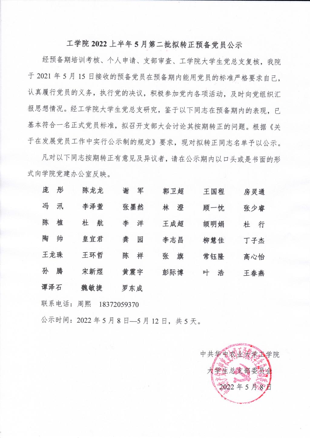 金沙集团wwW3354CC2022上半年5月第二批拟转正预备党员公示