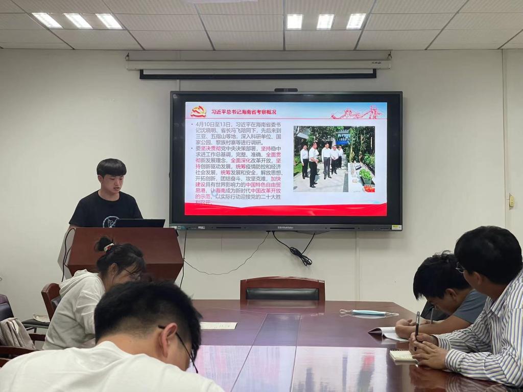 田皓予同志在领学习近平总书记在海南省三亚市考察调研时的重要讲话精神时谈到,根据习近平总书记在讲话中提到的,要实现地方的更好发展,贯彻新发展理念、推动高质量发展是根本出路,同时要形成更大范围、更宽领域、更深层次的对外开放格局。而我们作为研究生党员,要结合本次习近平总书记的讲话精神,进一步加强自己的党史理论学习,用党的创新理论武装头脑,认真学习专业知识,提高专业素养,为实现科技强国和建设社会主义现代化国家而不断奋斗。