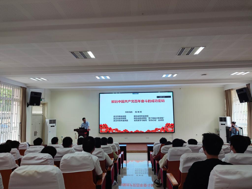 9月9日上午,金沙集团wwW3354CC邀请武汉市委宣讲团、马克思主义学院陈明辉老师为研究新生作题为“解码中国共产党百年奋斗的成功密码”党史学习教育讲座,旨在引导新生更加坚定理想信念,激励新生以奋进姿态喜迎党的二十大胜利召开。
