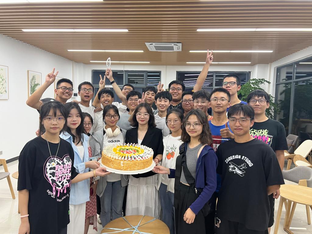 “抢不到的美育课和画不懂的工程图谁懂?!”“我是山西人,为了保障国家电力供应,国庆能不能请假回去帮忙挖煤啊?”“我是广西的,想吃螺蛳粉的来找我”“我是河北邯郸的。”“我也是河北邯郸的!”生日会秒变分享会和见面会。小寿星们你一言我一语,各种热梗玩转不停,也充斥着浓浓的乡情,欢声笑语充斥着温馨的活动室……