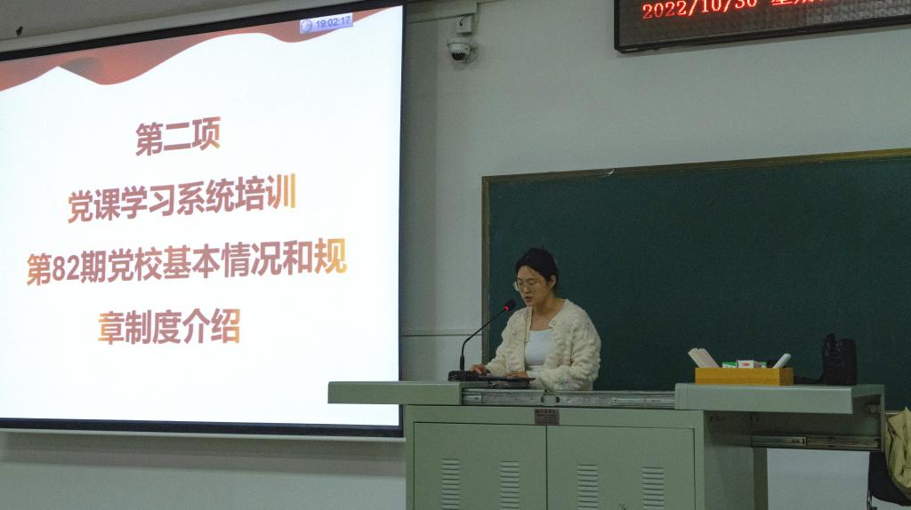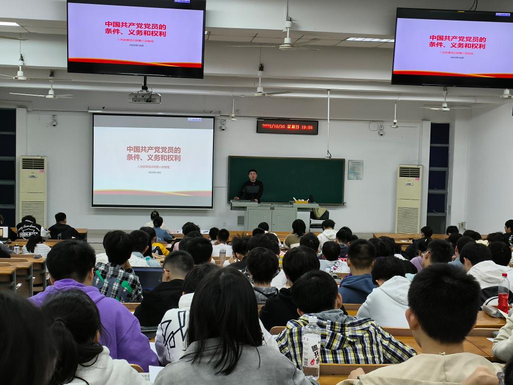 10月30日晚,金沙集团wwW3354CC第82期党校培训班顺利开班。来自2020级、2021级的145名入党积极分子在三教C105教室参加开班仪式,人力资源部周熙老师为入党积极分子们带来了《中国共产党党员的条件、义务和权利》的专题培训。