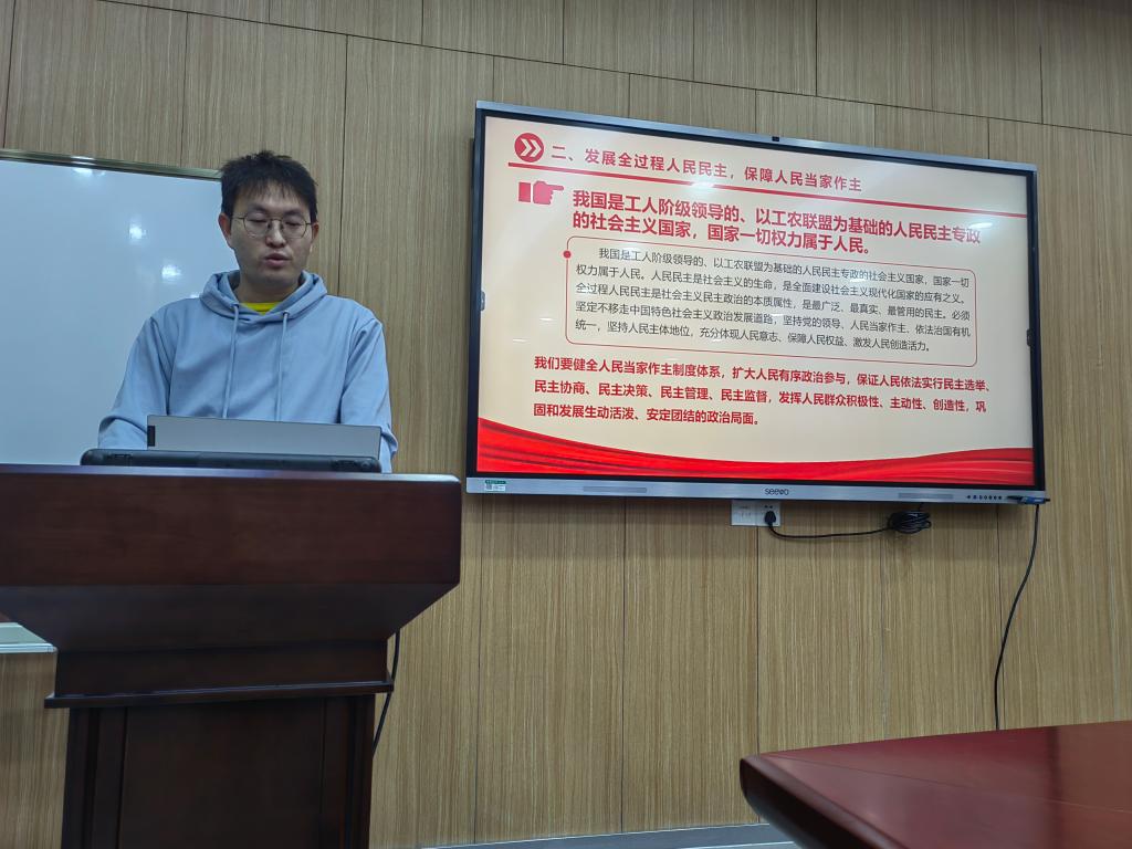 黄朕好同志领学“坚持科技是第一生产力,人才是第一资源,创新是第一动力”相关内容时提到,教育、科技、人才是全面建设社会主义现代化国家的基础性、战略性支撑。作为一名研究生党员,我们应当肩负起自己的历史使命,把研究方向与国家发展需求结合起来,夯实基础并敢于创新,助力我国从人才大国向人才强国迈进。