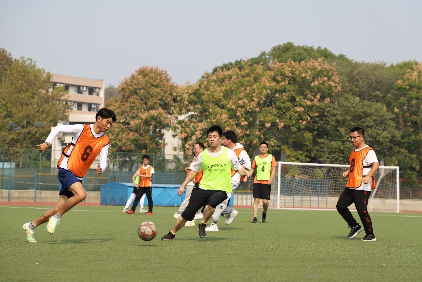 本次足球赛事分为男子足球赛和女子足球趣味接力赛两个部分。男子足球赛由学院六个科研团队的90余名师生组成六支队伍开展8人制足球赛,并通过小组赛和排位赛进行排名,女子趣味接力赛三人为一组,三人配合接力完成带球、传球、射门后再带球射门等规定动作后计时排名。女子接力赛共有21名女生组队参加,余飞燕、黄庆兰、张妍妍小组以全程28.31秒,获得了女子足球趣味接力赛第一名。