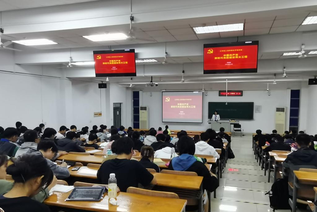 瞿明丽从《〈共产党人〉发刊词》谈起,她谈到,1939年10月,在《〈共产党人〉发刊词》中,毛泽东同志第一次论述了中国革命胜利的“三大法宝”,第一次将党的建设称为“伟大的工程”。她给同学们逐一解析了中国历代领导人的指导思想,她指出,继续推进新时代党的建设新的伟大工程,这是以习近平同志为核心的党中央统筹把握中华民族伟大复兴战略全局和世界百年未有之大变局,科学总结我们党百年奋斗的历史经验,坚持以伟大自我革命引领伟大社会革命,对加强新时代党的建设作出的战略擘画。