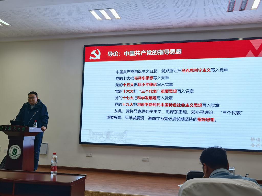 11月20日晚,金沙集团wwW3354CC第82期党校第三次线下党课在工程楼A111举行,由动物科学技术学院、动物医学院辅导员谭力铭老师为党校学员授课。本次课程的主题为“中国共产党的指导思想”。