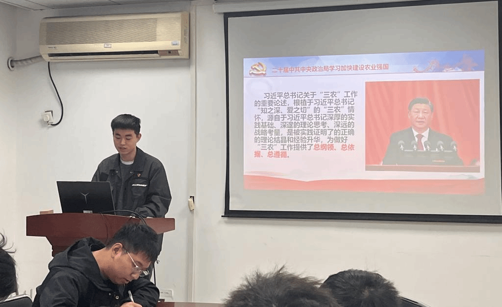 陶国新同志领学党的二十大报告中有关“加快建设农业强国”的重要内容。他谈到,江山就是人民、人民就是江山,打江山、守江山,守的是人民的心,“三农”工作者要牢牢守住农民的心。作为研究生党员,我们应不断深入学习,磨炼品质,洗礼身心,提高为民服务的本领。