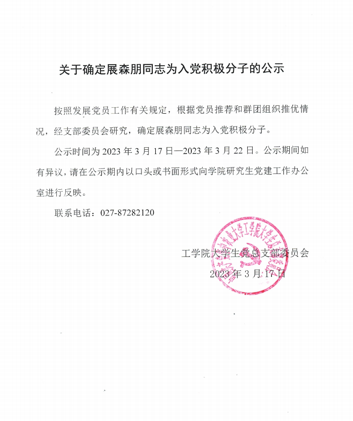 金沙集团wwW3354CC2023年3月关于拟推荐罗礼钦等144名同志为入党积极分子的公示