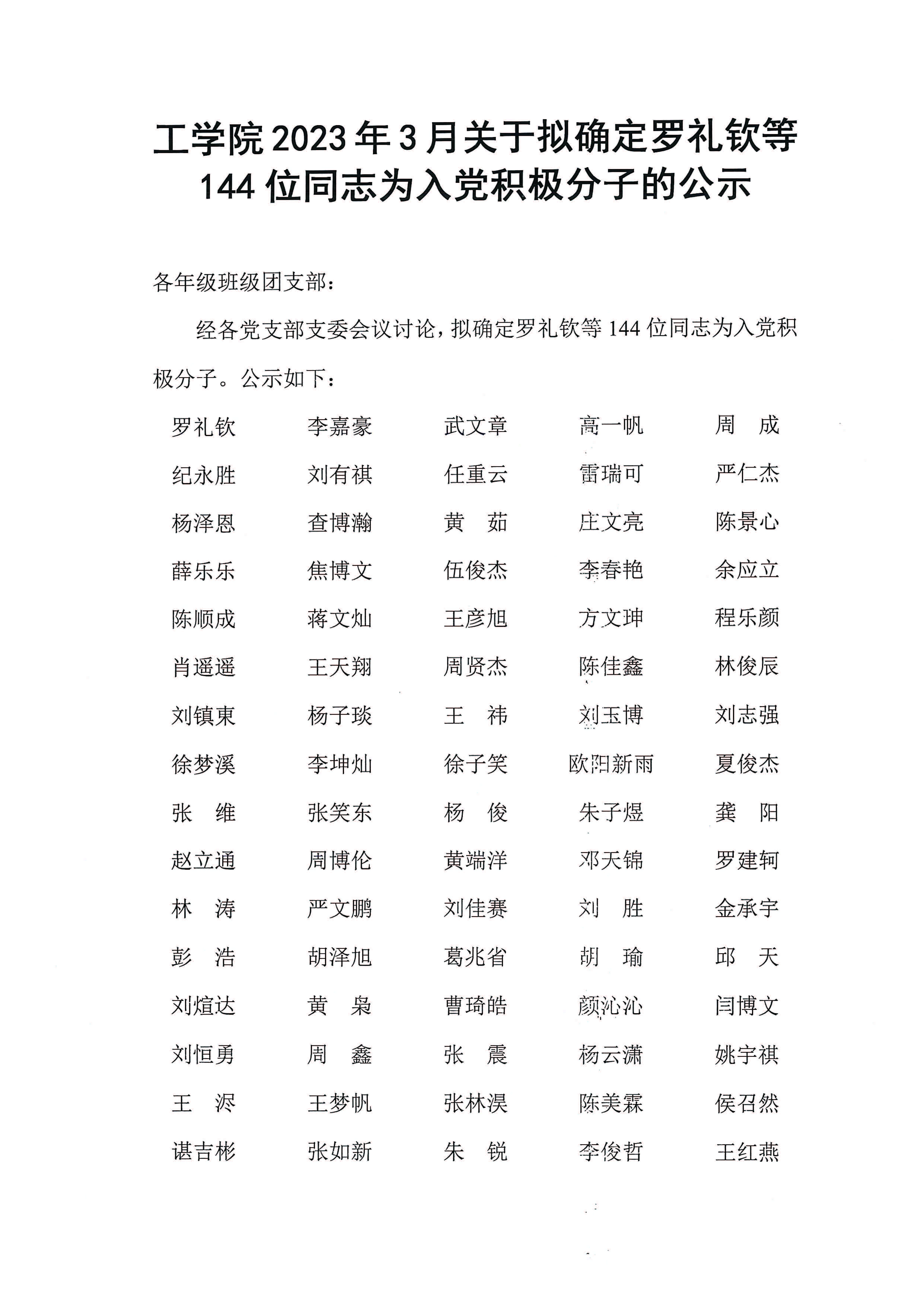 金沙集团wwW3354CC2023年3月关于拟推荐罗礼钦等144名同志为入党积极分子的公示