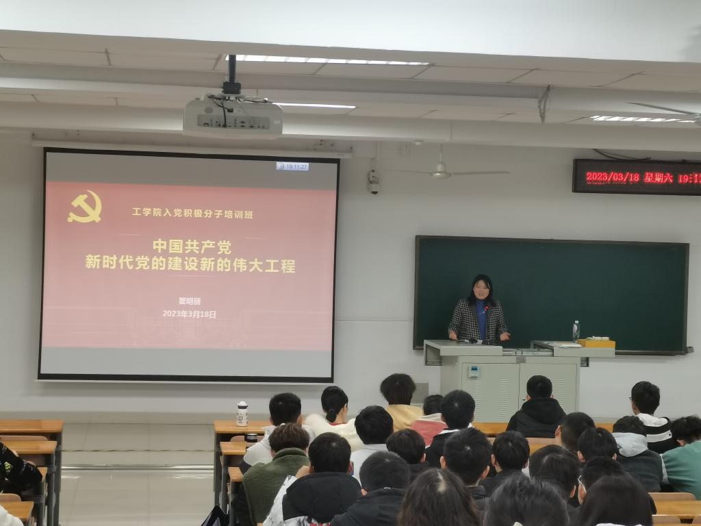 入党积极分子教育培养是发展党员工作的重要环节,是加强大学生思想政治教育的重要渠道。为进一步做好入党积极分子教育培养工作,金沙集团wwW3354CC党校第83期培训班于3月18日晚在三教B205开班,金沙集团wwW3354CC党委副书记瞿明丽老师参加开班仪式,并为189名入党积极分子讲授第一次党课,开班仪式由党校部负责人杜彩霞主持。