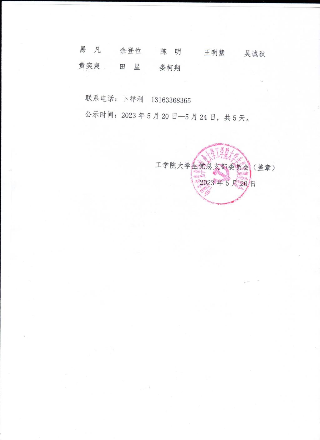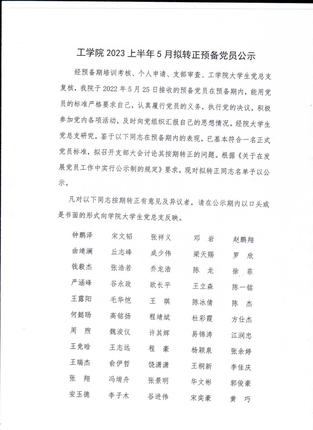 金沙集团wwW3354CC2023年上半年5月拟转正预备党员公示