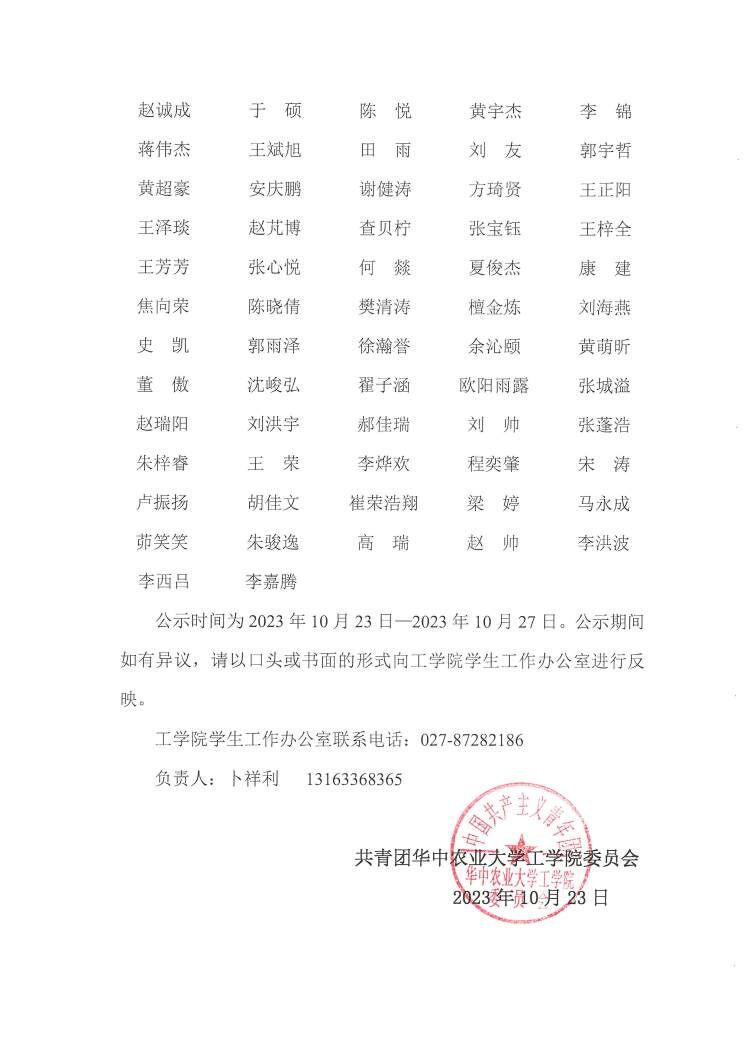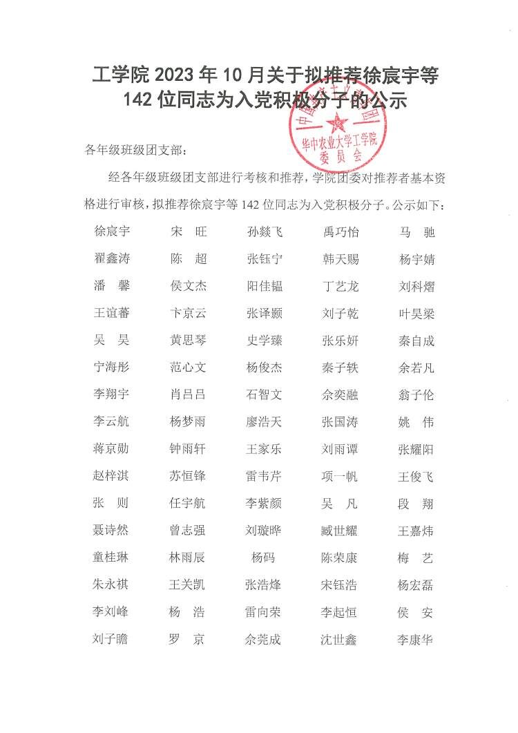 金沙集团wwW3354CC2023年10月关于拟推荐徐宸宇等142位同志为入党积极分子的公示