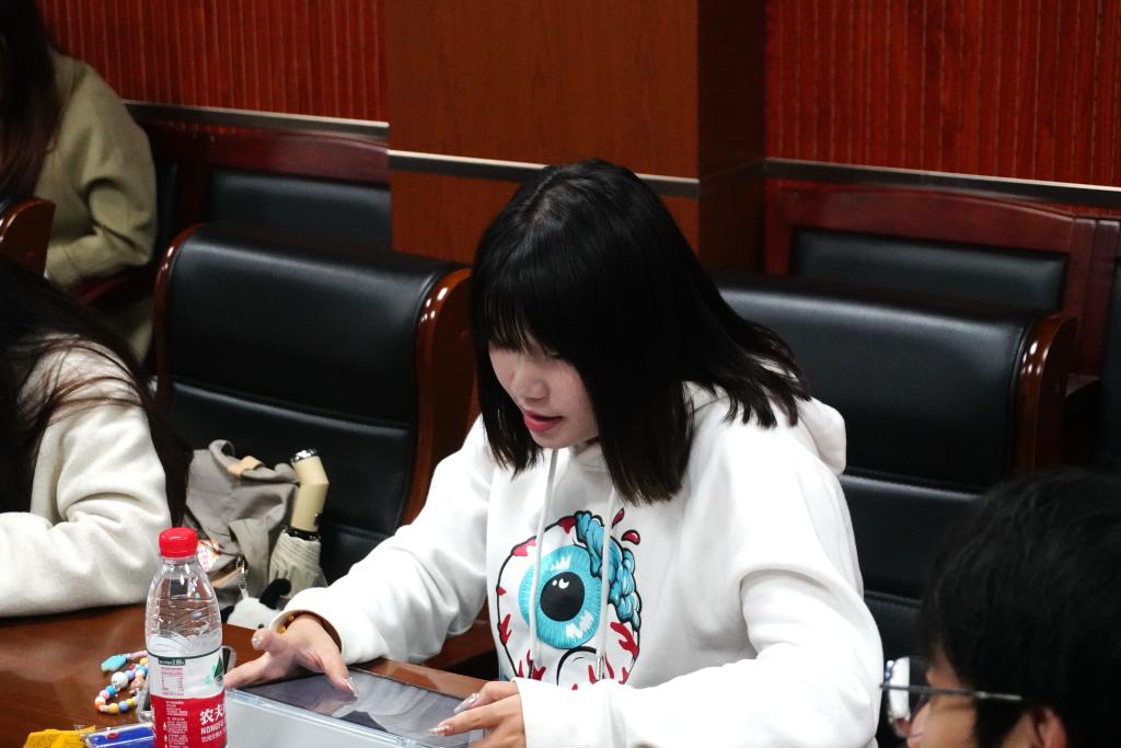 文法学院代表唐糖结合学生工作,对全球互联网发展倡导构建网络空间命运共同体的发展趋势,分享了个人的理解:“我认为学生会就是一个共同体,各部门之间都有着紧密的联系,一荣俱荣,一损俱损。我们需要增强学生会各部门的凝聚力,弱化各部门之间的边界感,加强各部门之间的交流,学生会是一个整体,它的成绩离不开每个部门,每个工作人员的努力和付出。”