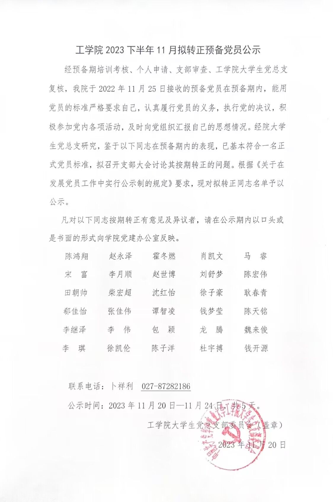 金沙集团wwW3354CC2023下半年11月拟转正预备党员公示
