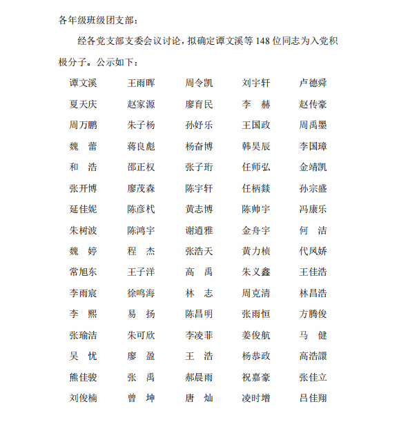 【本】金沙集团wwW3354CC2025年3月关于拟确定谭文溪等148位同志为入党积极分子的公示