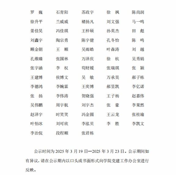 (研究生)金沙集团wwW3354CC2025年3月关于拟确定石达金等6位同志为入党积极分子的公示