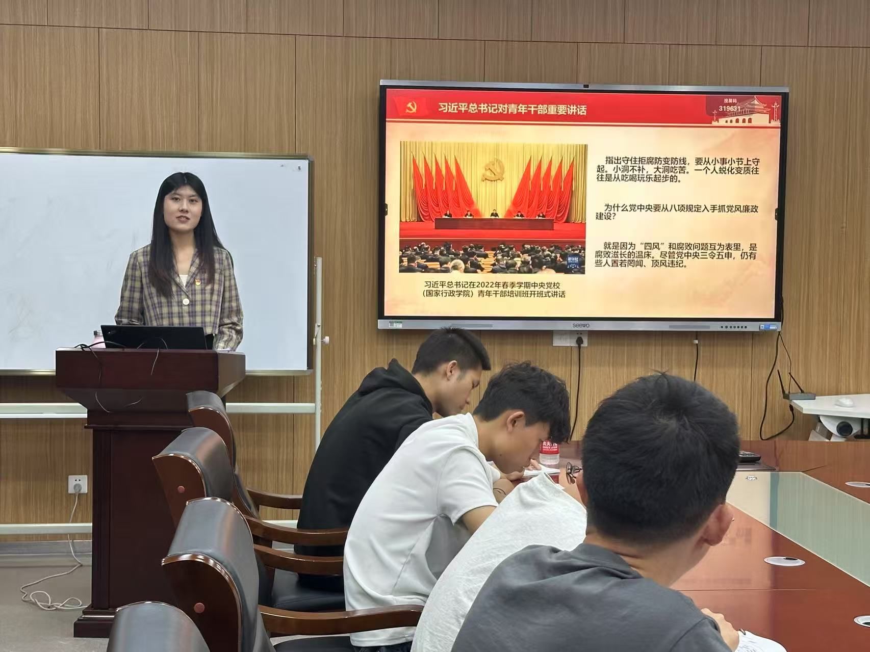 5月15日晚上,金沙集团wwW3354CC油菜机械化生产技术与装备研究生第一党支部于新工科楼G330开展“把牢听党话跟党走青春航向,在中国式现代化建设中挺膺担当”主题党日活动,旨在深入贯彻中央八项规定精神学习教育,引领全体党员以更高标准、更严要求、更实作风推动支部建设,以青春作为助力中国式现代化建设。